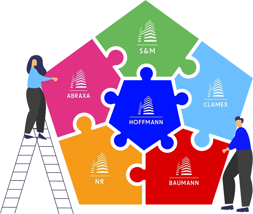 Mit Hoffmann Facility Services, Clamex Facility Services, Baumann Facility Services, S&M Facility Services, NR Facility Services und ABRAXA Facility Services vereinen sechs Unternehmen ihre Kompetenzen und Erfahrungen, Expertise und Kräfte, Werte und Überzeugungen unter dem Dach der Hoffmann Group. Gemeinsam schaffen wir eine bundesweite Abdeckung mit regionaler Verwurzelung – und eine innovative, offene Unternehmenskultur von der breiten Dienstleistungspalette bis zu jedem einzelnen Menschen.